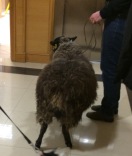 Godfrey, one of our Shetland Sheep, waiting for his turn to enter the lift