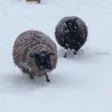 Godfrey & Frazer, our Shetland Sheep, experiencing snow for the first time
